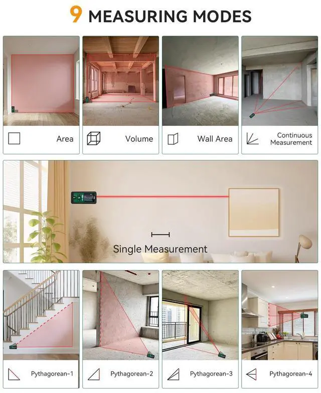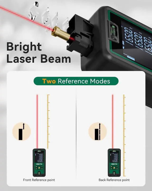 IP54 waterproof and dustproof for maximum protection of laser distance measurement. Ogeto laser measurement uses class II laser, with output power less than 1mW, which is clearly visible without damaging the eyes. It also has a compact design that takes up less space and can fit into any pocket to facilitate your work.