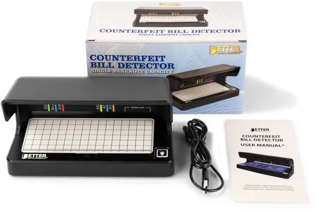 Counterfeit Bill Detector with UV Fluorescent Light, Portable & Compact for All Currencies, Passports, Gov't Issued IDs, Credit Cards, Power Cord & Rechargeable Battery