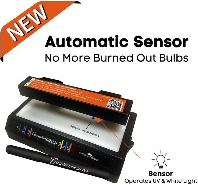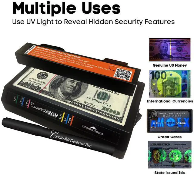 Security strip test: powerful UV light is embedded in the cap and is easy to activate; The LED bulb reveals the hidden security stripe found in all 5 dollar bills and higher.