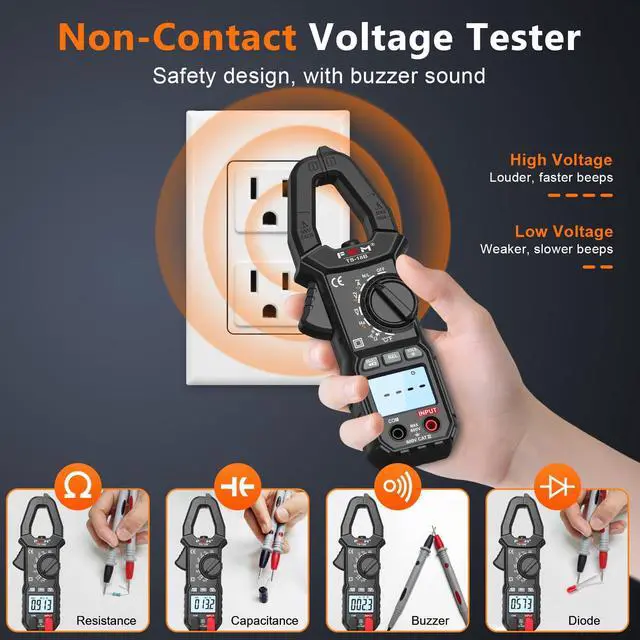 Multifunction FKM amp clamp multimeter with wide measurements mode, it goes beyond the basics, accurately measuring AC current, AC/DC voltage,NCV detection,resistance,capacitance,continuity,Hz/Duty cycle,diode and temp test,LED Backlit Display | Built-in Flashlight | Essential Electrician Tools