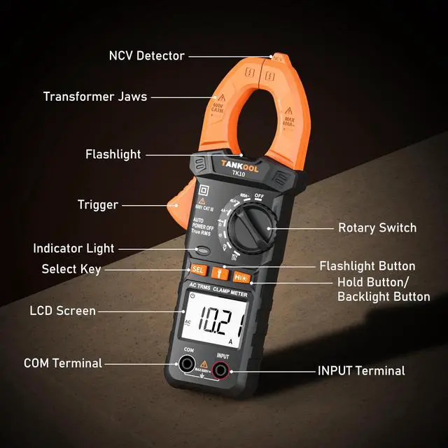 Easy to Use:Elegant and sturdy, anti-slip and anti-drop, with thoughtful features such as Data Hold, Low Battery Indicator, Auto-Off and Buzzer Alarm. In addition, the amp meter is equipped with an LCD Backlight Screen and an LED Flashlight to help you work in dim or poorly lit environments like electrical closets, under buildings, behind appliances, etc.