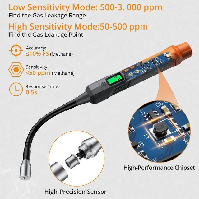 Ultra-Fast: Pinpoints leaks in 0.5 seconds for quick action. High Sensitivity: Detects methane below 50 ppm at the safest stage. Reliable Accuracy: =10% accuracy ensures trustworthy critical readings.