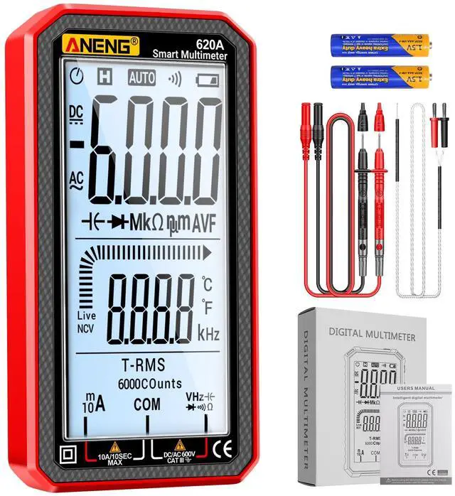 The 620A Digital Multimeter is a comprehensive electrical testing tool designed for electricians, engineers, and DIY enthusiasts. With its multi-functional capabilities, it accurately measures AC/DC voltage, current, resistance, capacitance, frequency, and temperature. This versatile device supports diode testing, continuity checks, non-contact voltage detection, and live wire verification, making it an essential companion for industrial diagnostics and household repairs.