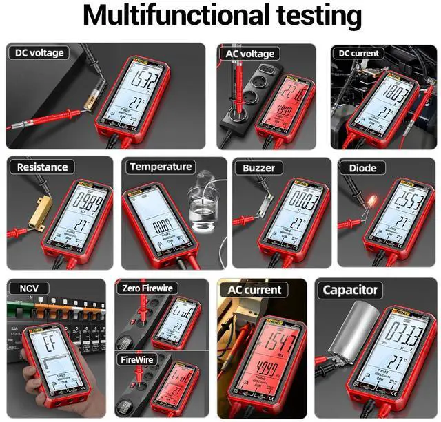 Accurately measure AC/DC voltage, current, resistance, capacitance, frequency, and temperature with This digital multimeter. Ideal for electricians, engineers, and DIY enthusiasts, it offers diode testing, continuity checks, NCV detection, and live-wire verification.