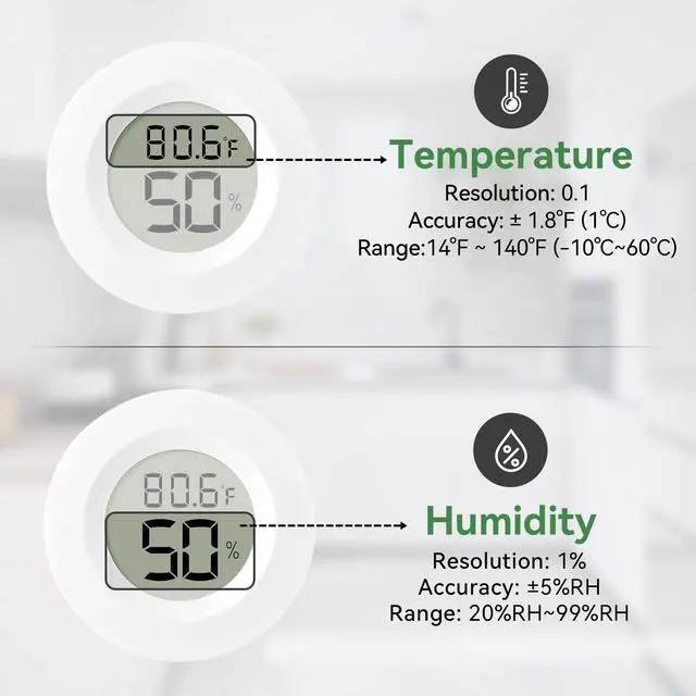 - Error margin of humidity : ±5%;Temperature: ±1.8°F(±1°C). Inconsistent readings in measurements between multiple hygrothermographs within these error margins are normal.