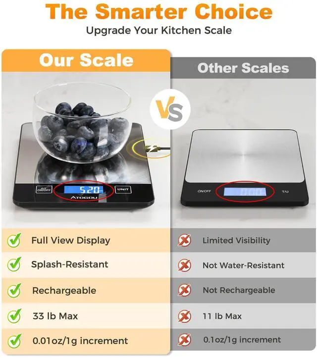 Atogou Food Scale, 33lb Rechargeable Kitchen Scale