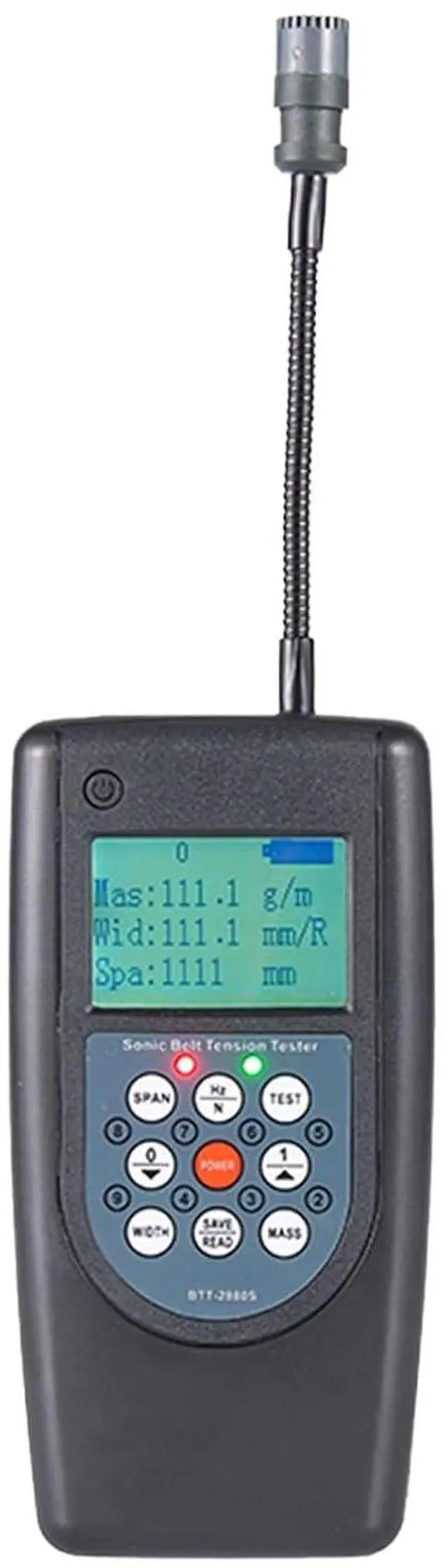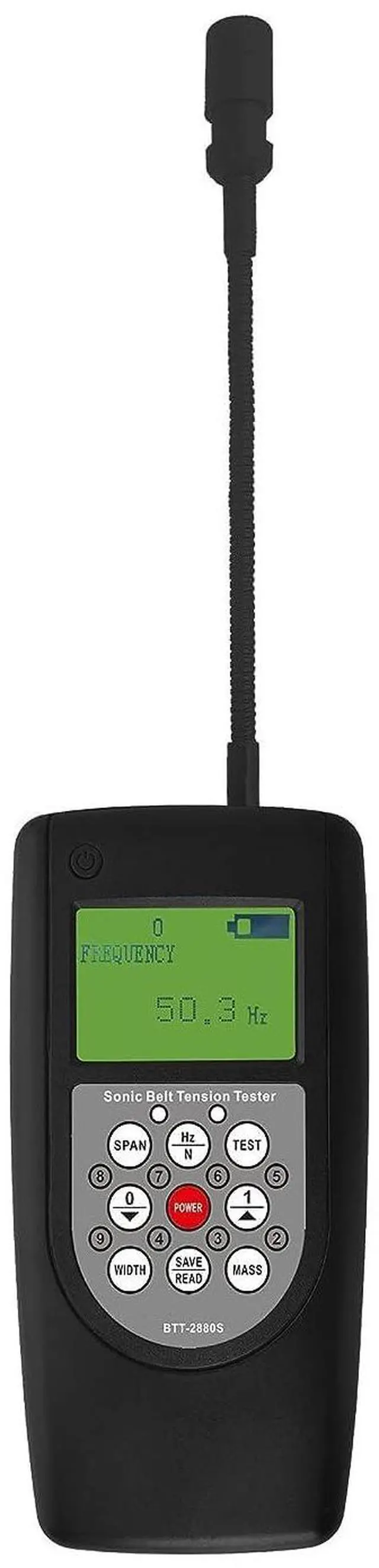 - BTT-2880S Belt Tension Meter can be used to measure the vibration frequency (unit: Hertz) of the transmission belt when it is hit or moving fast.The tester uses an acoustic probe to capture the sound waves generated by the belt vibrations. After measuring in Hertz, the tester can use this data to calculate the belt tension in newtons.