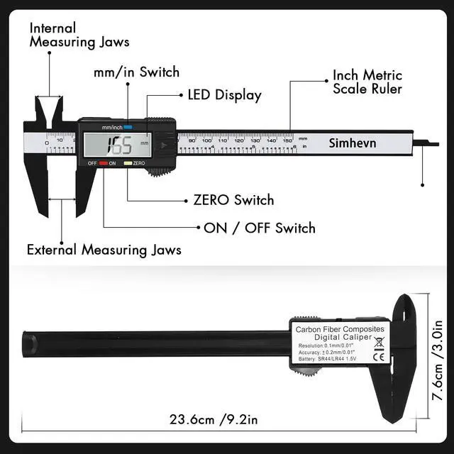 • [Measurement accuracy]: measurement range: 0-6"/0-150mm; resolution: 0.01"/0.1mm; accuracy: ±0.2mm/0.01. A perfect and accurate caliper measuring tool, suitable for home/jewelry/DIY measurement, please pay attention. This caliper is not suitable for professionals with high technical accuracy.