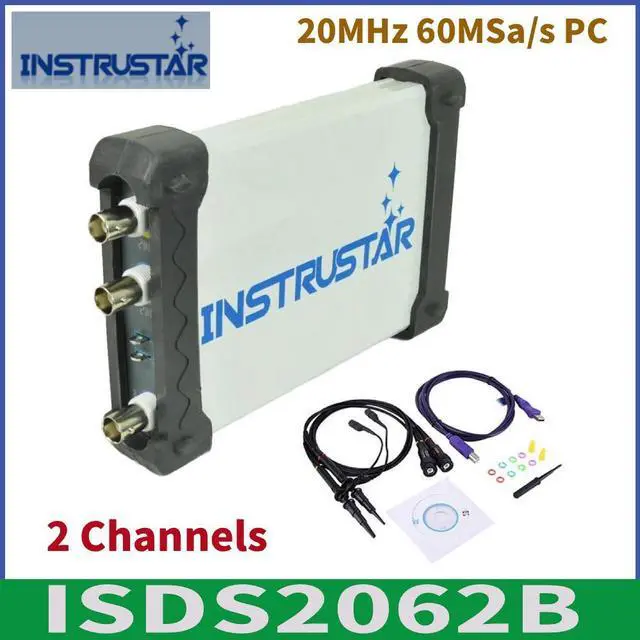 ISDS2062B dual-channel digital oscilloscope, with "low-cost, high-performance" as the design goals. well-designed bandwidth of 12Bit ADC, 20M, 60M sampling rate, 2 channels, alternating support X-T and X-Y alternating pattern of two-channel virtual oscilloscope, spectrum analyzer. Meanwhile, ISDS2062B has DDS function. DDS support 5 kinds of waveform output, Sine wave can output up to 20M. The device communicate with the PC via high speed USB2.0.