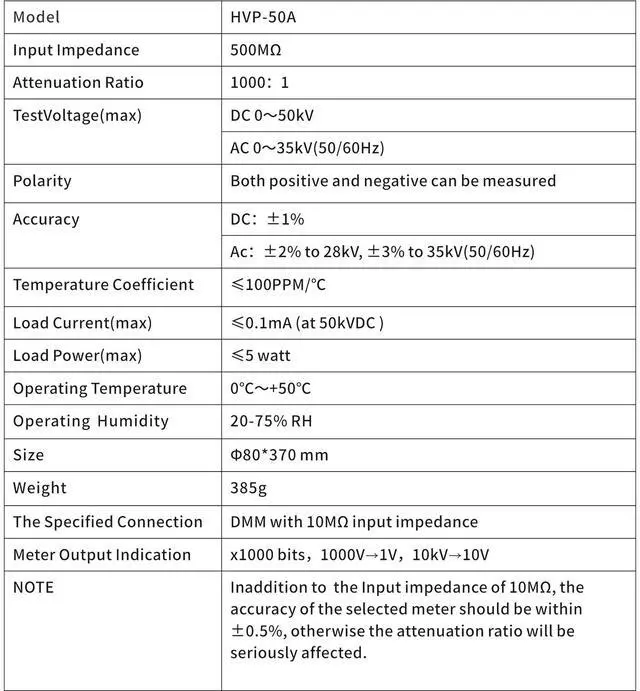 In addition to the input impedance of 10M, the accuracy of the selected meter should be within ±0.5%, otherwise the attenuation ratio will be seriously affected.