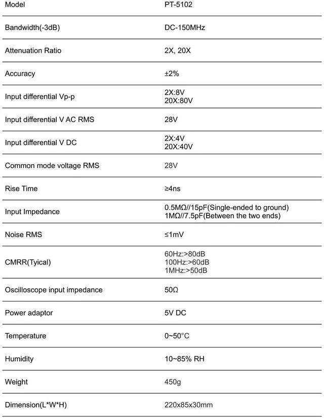 CMRR: 60Hz:>80dB; 100Hz:>60dB; 1MHz:>50dB
