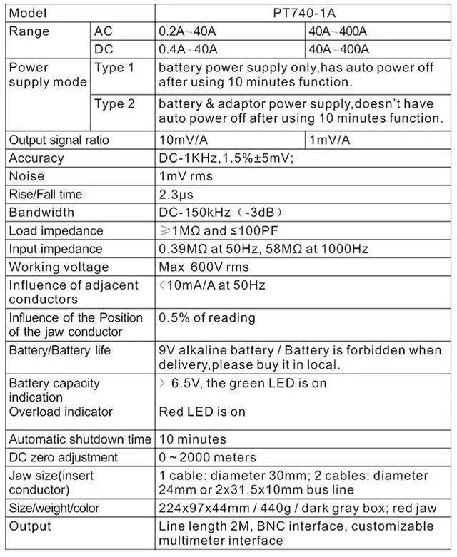 Out Signal Ratio: 10mV/A(100:1), 1mV/A(1000:1)