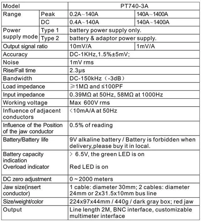 Out Signal Ratio: 10mV/A(100:1), 1mV/A(1000:1)