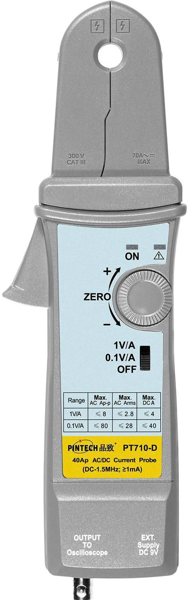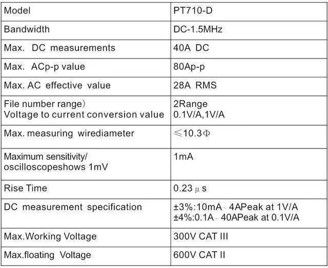 Measurement Accuracy: ±3%: 10mA~4Apeak at 1V/A; ±4%: 0.1A~40Apeak at 0.1V/A;