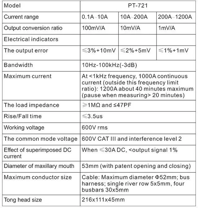 Current Range: 0.1A~10A; 10A~200A; 200A~1200A