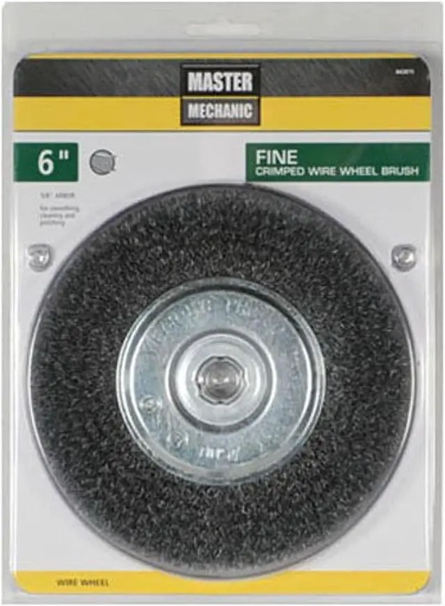 Master Mechanic, 6", Fine, Crimped Wire Wheel, 5/8" Arbor Size, For Use At Speeds Up To 3, 750 RPM,. 008 Gauge Wire, For Smoothing, Cleaning & Polishing. Master Mechanic, 6" Fine Crimped Wire Wheel, 3/8" 1/2" Arbor Size, 400 RPM.
