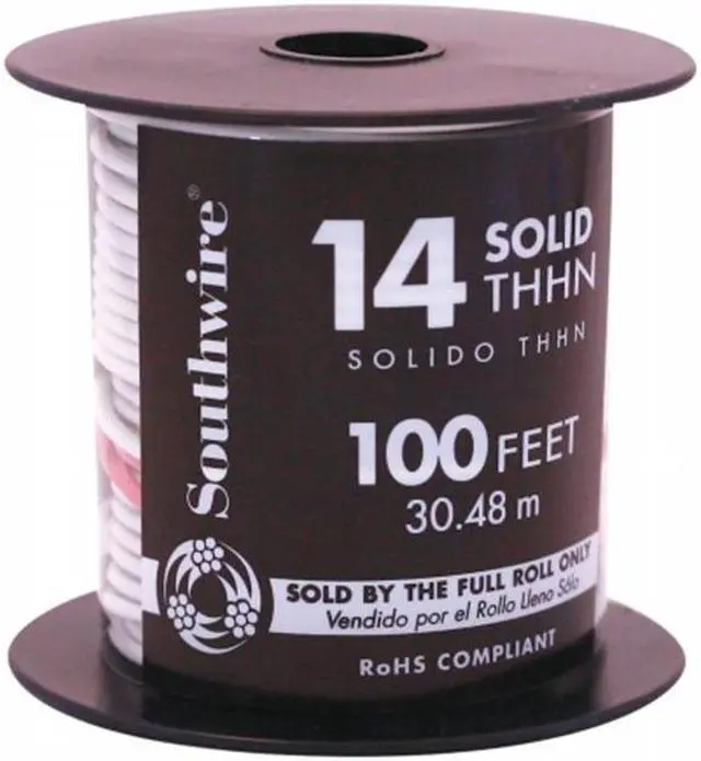 Building Wire, Trade Designation THHN, Wire Size 14 AWG, Wire Color White, Length 100 ft, Conductor Design Solid, Number of Conductors 1, Jacket Material Not Applicable, Insulation Material PVC, Nominal Outside Dia. 0.1 in, Packaging Spool, Jacket Color Not Applicable, Voltage 600 V, Stranding 1. This item has been restricted from sale in the following state (s): []