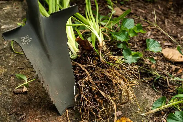 This digging shovel is a multi-purpose gardening tool to make outdoor tasks easier for you. It has a V-shaped tip that is tough enough to rip through hard dirt and roots. Digging up plants and grasses has never been easier. This heavy duty shovel can easily get things done for you. Your green garden needs a 3-in-1 tool that is a shovel, root hatchet, and root saw. The Root Slayer is a durable and convenient tool for the outdoors.