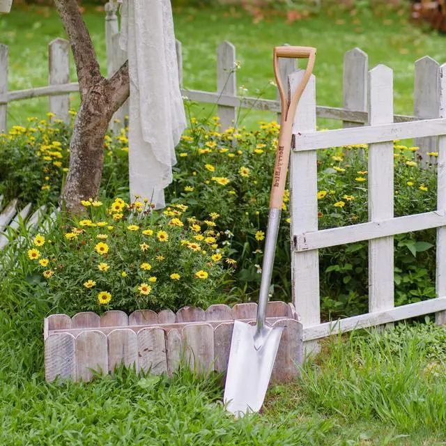 - The metal spade head is made of high-quality polished stainless steel.