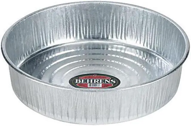 Galvanized construction. Seamless with reinforced wire rim. Top 16" x bottom 16" x 4" height. Capacity: 3 Gal. Height: 4 In. Width: 16 In. Length: 16 In. Shape: Round Material: Galvanized Steel Color: Silver