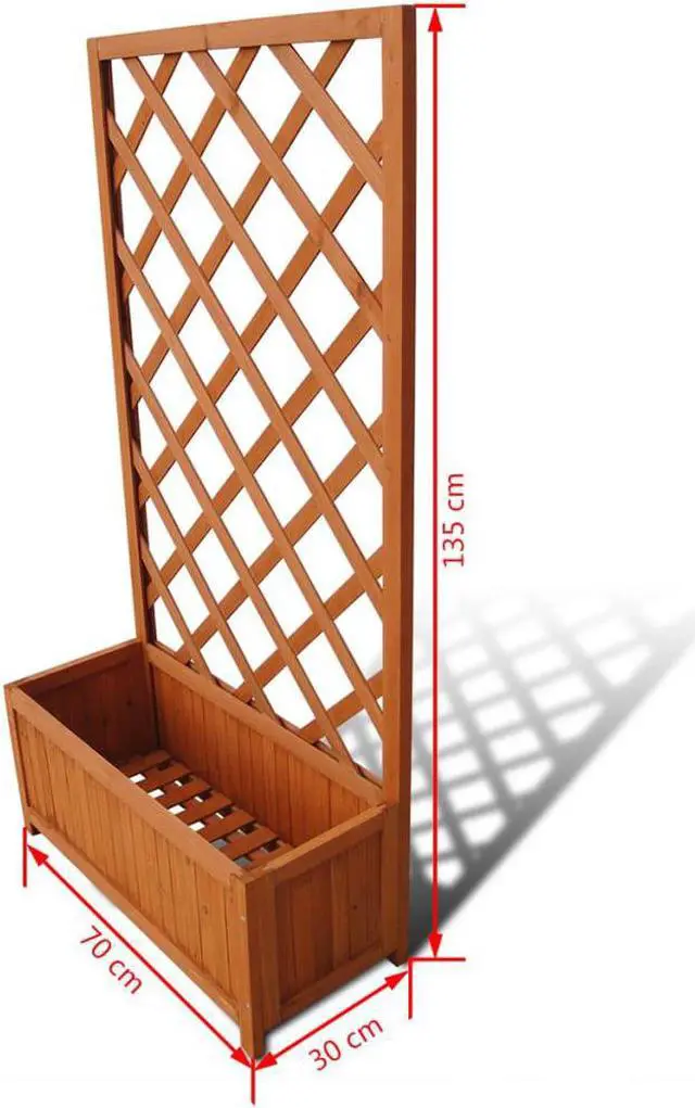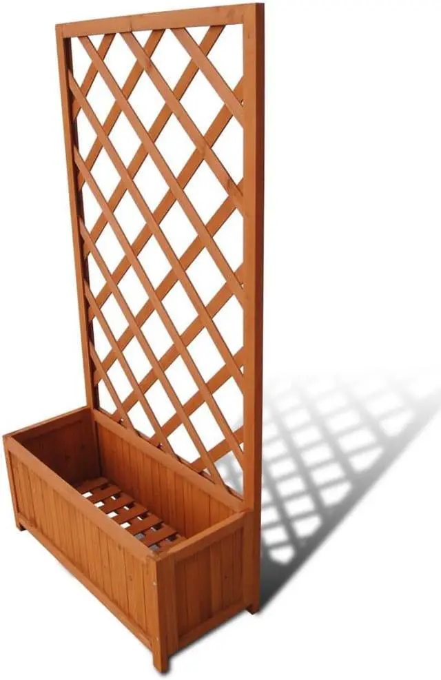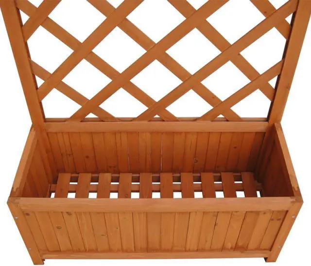 This wood planter, featuring a built-in trellis, will add a touch of charm to any outdoor space. The trellis planter has a large flower box which can accommodate a large number of green plants and flowers. The built-in trellis offers great support for climbing plants. Crafted from weather-resistant solid wood, this trellis planter is durable enough to be used outdoors year round. Assembly is very easy.