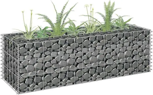 The sturdy gabion is designed to be filled with rocks or gravel. Made of rustproof and weather-resistant galvanized steel, the gabion is very stable and durable. The transverse and longitudinal wires welded at every intersection offers extra stability to the gabion planter and also works as a mesh grid.