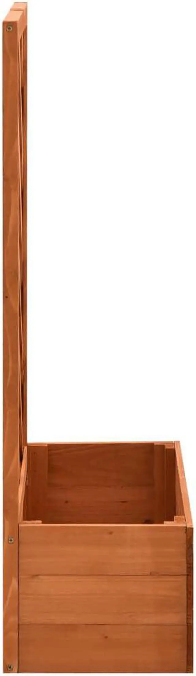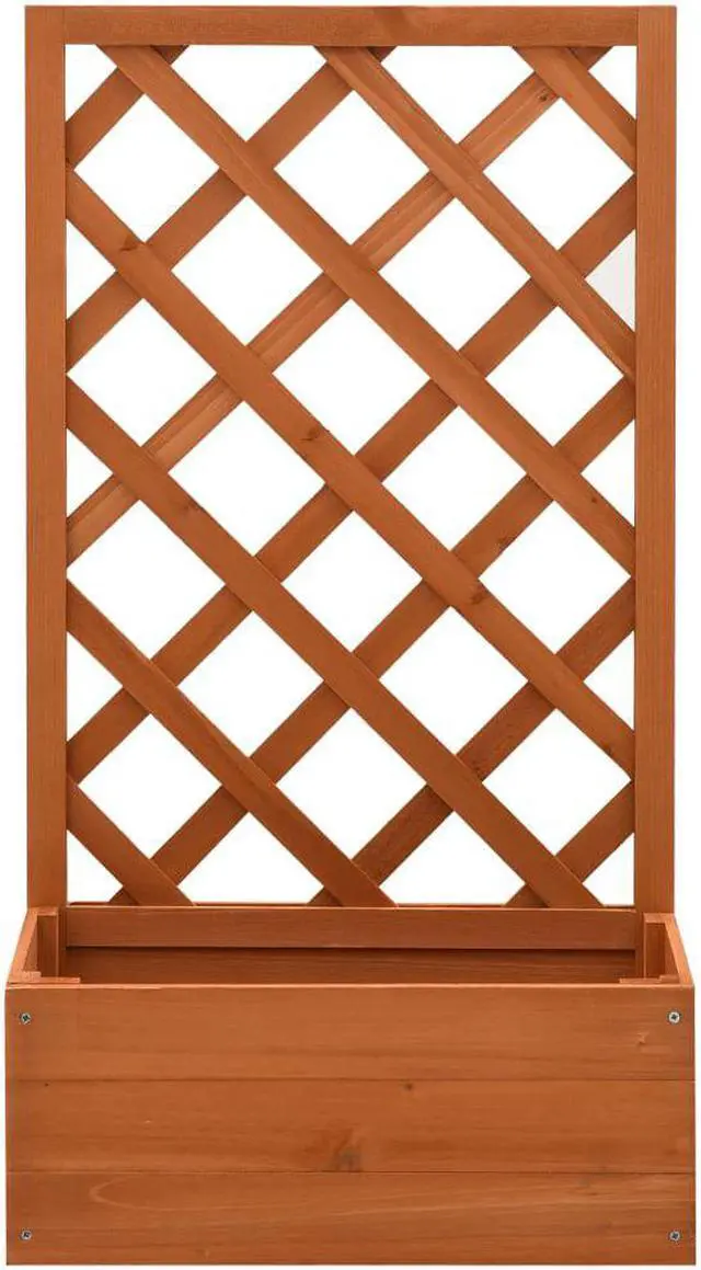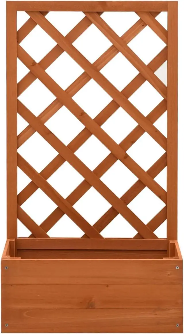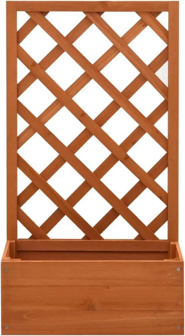 This trellis planter, made of solid firwood, is sturdy and suitable for outdoor use. The planter also has a flower box to accommodate a large number of green plants and flowers. Additionally, the built-in trellis offers excellent support for climbing plants.