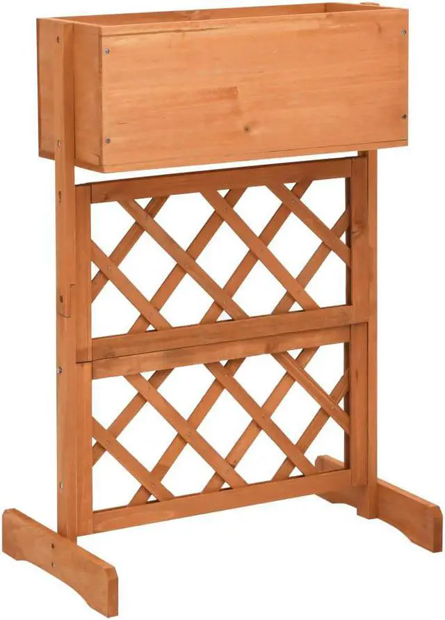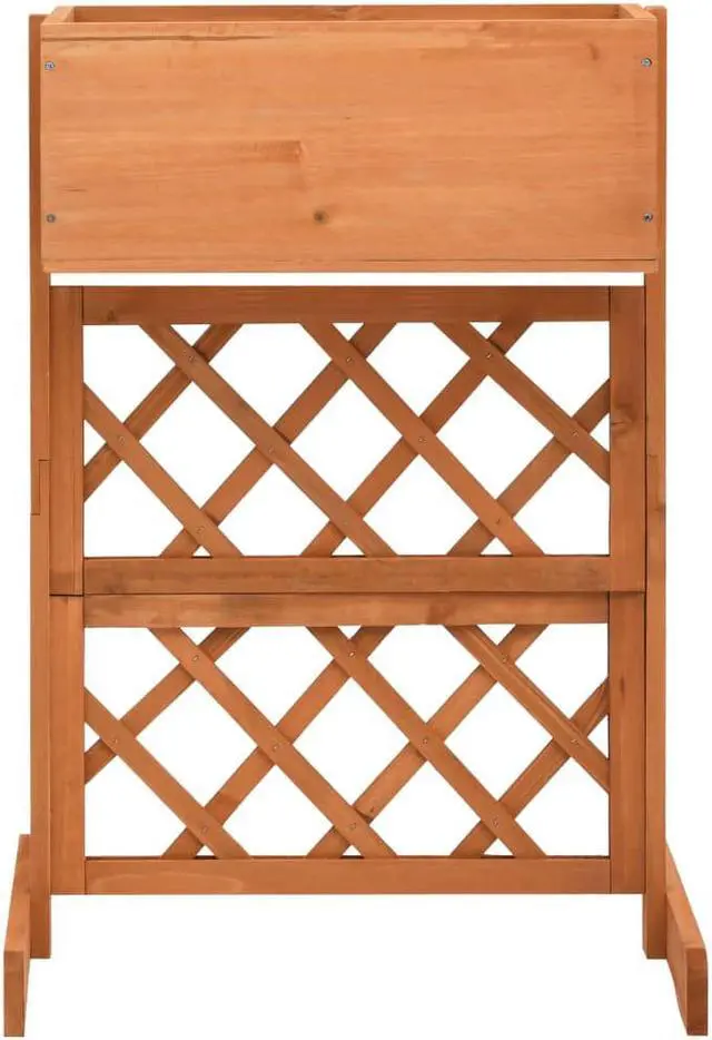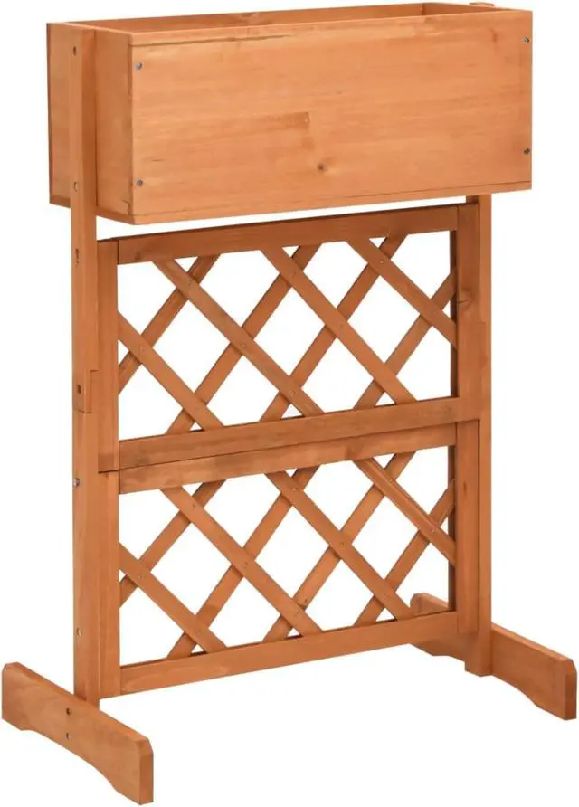 This solid garden trellis planter is a perfect way to grow a rich mixture of plants and flowers. It is especially suitable for climbers with trellis. This trellis planter, made of solid firwood, is sturdy and suitable for outdoor use. The garden planter has a flower box to accommodate a large number of green plants and flowers. Additionally, the flower box is situated at an ideal working height, making planting easier on your back and knees and reduces fatigue. The trellis between legs offers excellent support for climbing plants.
