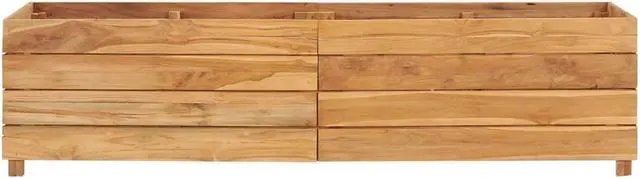 Made of recycled teak, this planter is very sturdy and durable. The beautiful wood grains make every piece of furniture unique and slightly different from the next. Four wooden legs at the bottom enhance extra stability. The bottom of the planter is equipped with a steel rack to put flower pots on. Additionally, the item is easy to assemble.