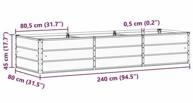 Overall dimensions: 94.49 x 31.50 x 17.72 in (L x W x H)