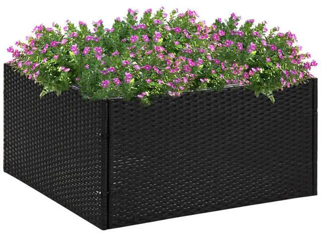 This modern square garden planter is perfect for sprucing up outdoor areas, giving flowers and plants a stylish home. With a smart mix of black PE rattan and powder-coated steel, it not only perks up your balcony or patio but also creates a fab growing environment for your beloved plants.