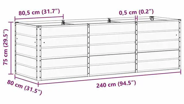 Overall dimensions: 94.49 x 31.50 x 29.53 in (L x W x H)