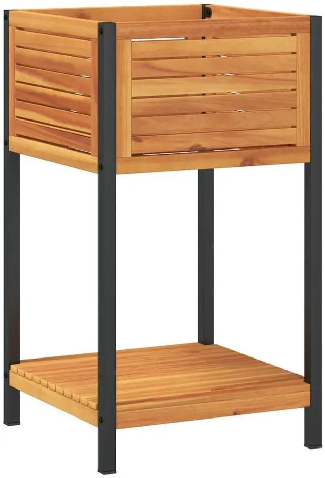 Durable Construction: The solid acacia wood provides a dependable frame thats built to last, while the powder-coated steel shelves give extra support, making this planter tough enough for the outdoors.