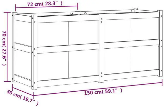 Exceptional Capacity: The generous dimensions of 59.1x19.7x27.6 in provide plenty of room for all kinds of plants, making it a great choice for herb gardens, flower displays, or ornamental shrubs. Solid Construction: Made from high-quality pine wood, this planter is built to last, adding character to your garden. Charming Rustic Design: Its elegant rustic style, with decorative touch, adds a slice of traditional flair to any outdoor space. Weather Resistant: Thanks to its UV resistant properties, this planter helps keep your plants safe from the sun, promoting healthy growth. Versatile Usage: Ideal for sprucing up gardens, patios, or balconies, its a refined plant stand for showing off your favorite greenery outside.