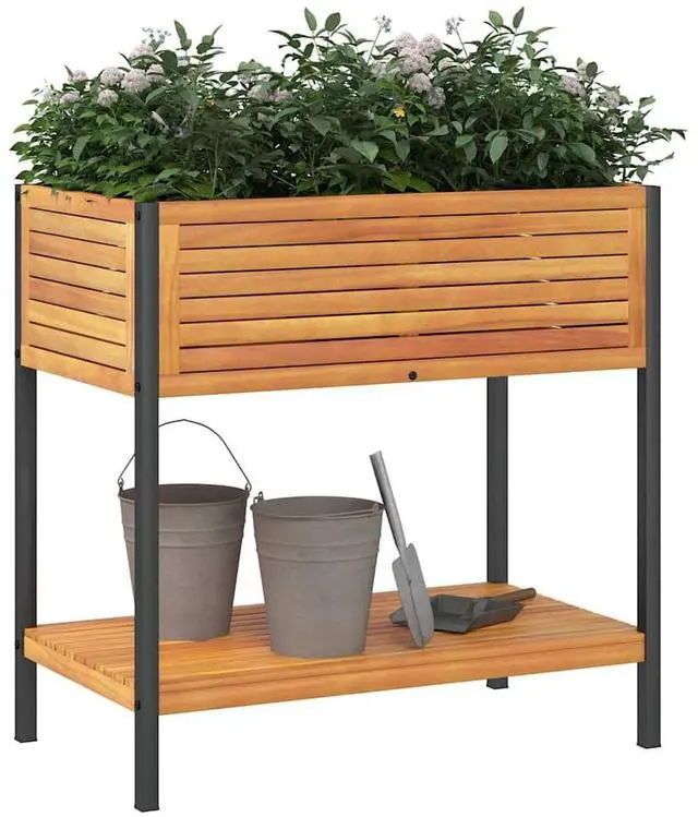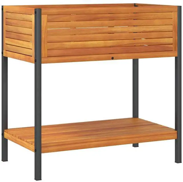 This Garden Planter with Shelf is a nifty mix of practicality and style, made to boost your gardening game while sprucing up your space. Built from solid acacia wood and powder-coated steel, its got a modern look with smooth touches that mean it not only does the job but also adds a bit of luxury to any balcony, living room, or garden.