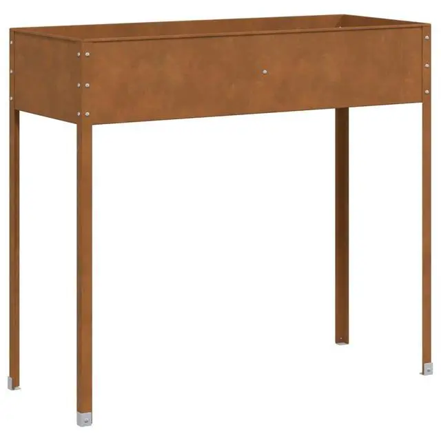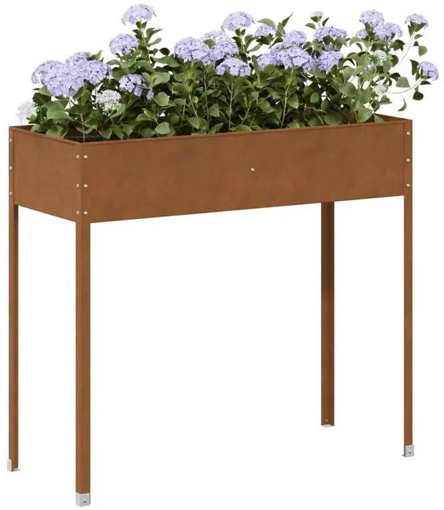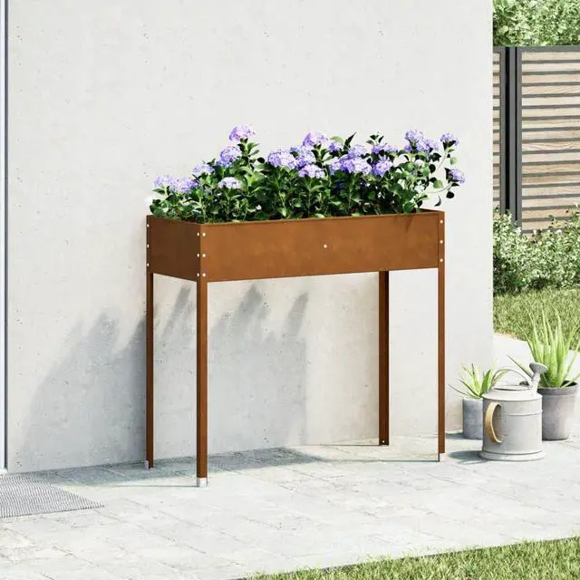 This planter box is made for outdoor spaces and combines practicality with rustic charm. Its perfect for any gardener. Whether its on balconies, in gardens, or patios, it really enhances your planting game with its generous size and weathered steel look.