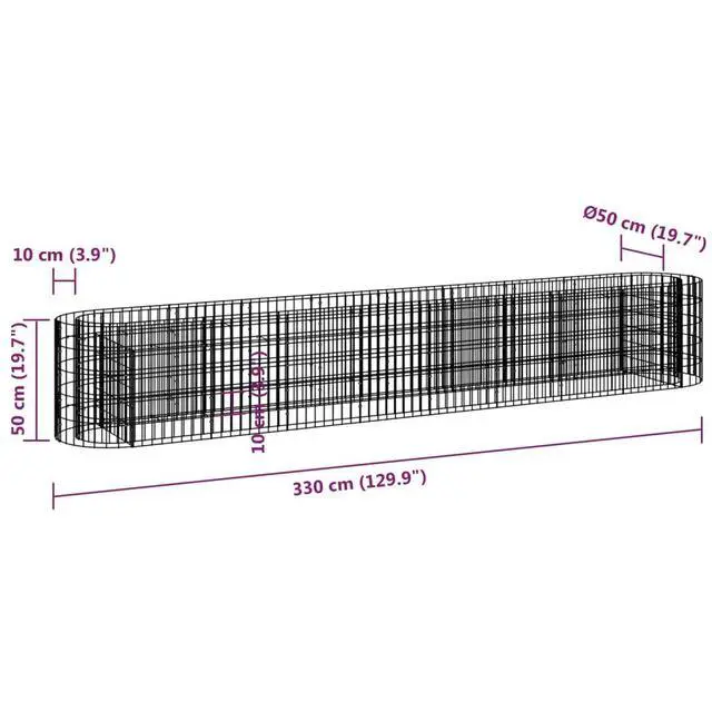 This gabion raised bed is a stand-out addition to any outdoor space. At 129.9 in by 19.7 in by 19.7 in, it provides a unique way to lift your plants while adding an industrial touch to your garden.