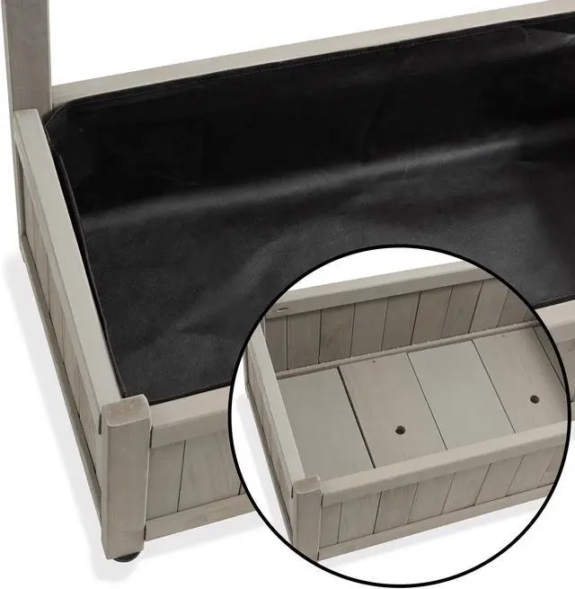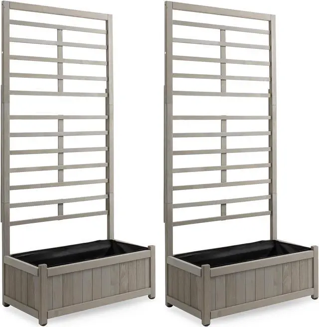 This garden planter is designed with a ladder-back trellis which has three options of use: the planter base alone, planter base with 44 high medium trellis, and planter base with top trellis extending to 67 high. The trellis provides structural support but also offers plenty of space for climbing plants to flourish. Crafted from cedar wood that is naturally resistant to decay and environmental elements, ensuring durability and longevity. For added convenience, the planter includes a set of four wheels, two of which have locks to ensure stability while allowing easy mobility around your garden, balcony, or patio. The planter box itself is ideal for both growing plants directly in the soil and for holding your favorite potted plants. Ergonomically designed to minimize the need to bend or kneel, this garden bed enhances comfort and accessibility, making gardening a more enjoyable experience for everyone. Additionally, the planter is easy to assemble with all hardware and an assembly manual provided, making it a versatile and practical choice for both urban and residential settings. Liner is included.