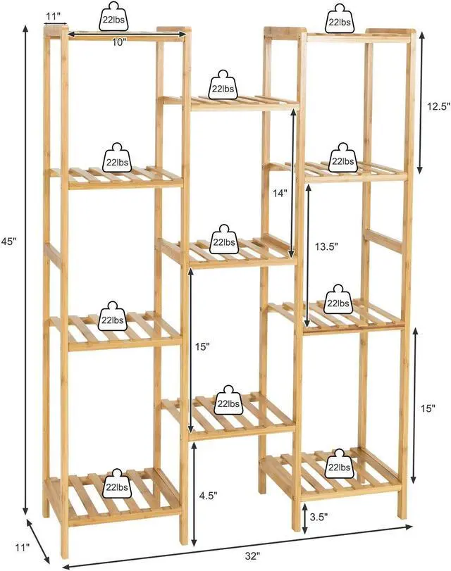 Multi-scene Use: As the overall dimension of the plant shelf is suitable for most rooms, you can place it indoors. Apart from indoor usage, the plant shelf is also suitable for outdoor applications. You can place it in the garden, on the deck and outside the coffee shop.