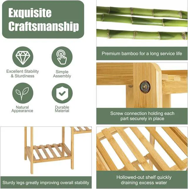 Hollowed Out Shelf Laminate: To conveniently drain excess water, each layer of the plant shelf is made up of some wicker rods and there is a gap between adjacent wicker rods. Thanks to this feature, you will no longer worry about over-watering your plants.
