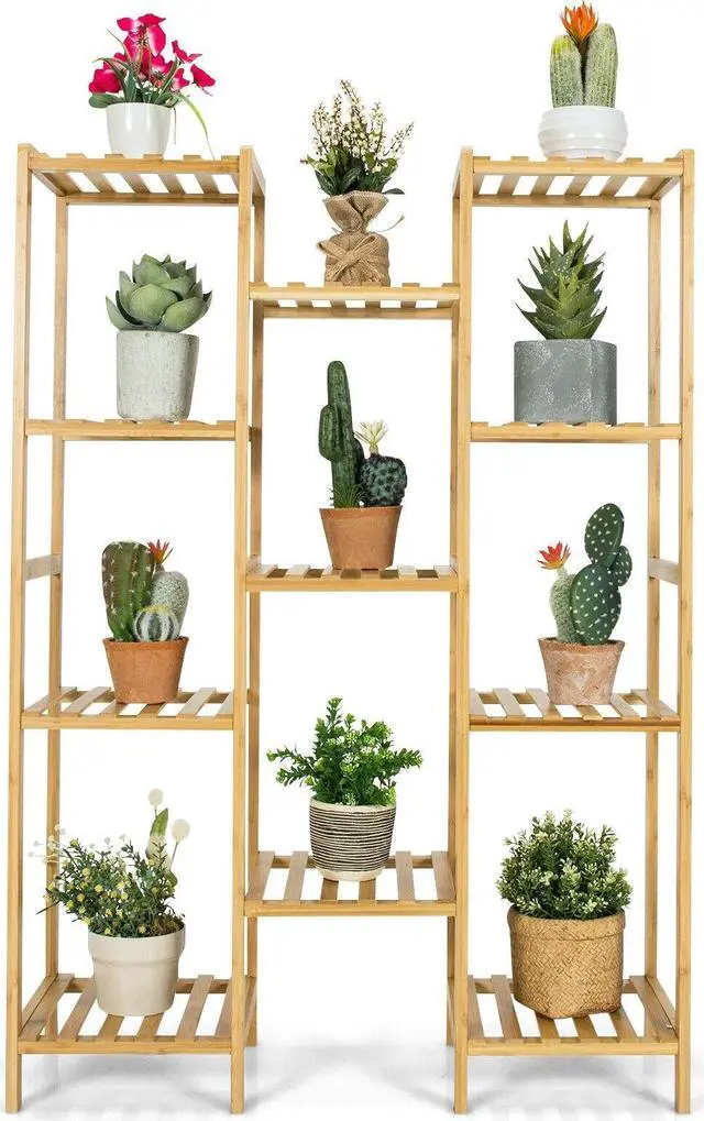 High-Low Structure: There are 9/11 tiers on the plant stand in total and each tier is located at a different height. In this way, when the sun shines, each plant will get full exposure to the sun, which is fairly beneficial to the healthy growth of plants.