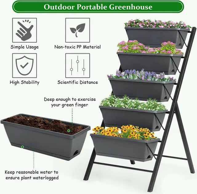 Sufficient Bed Space: Totally 5 plant beds are removable for various rearrangement and repotting. The garden bed is perfect for various flowers, herbs, seeds, succulents or even tropical plants.