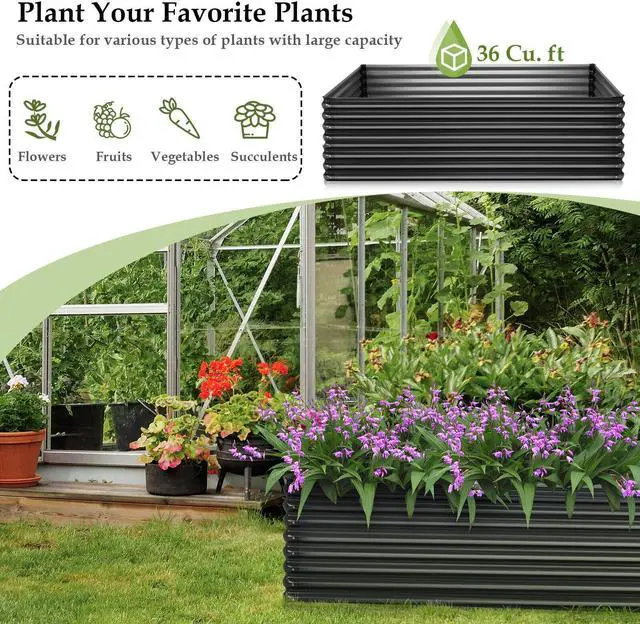 Durable Heavy Duty Frame: Constructed of premium galvanized steel, the elevated planter box is rust-resistant and will withstand the test of time better than wooden planters. In addition, the wave shape of the metal panels ensures high resistance to compression and makes this raised garden bed less prone to deform.