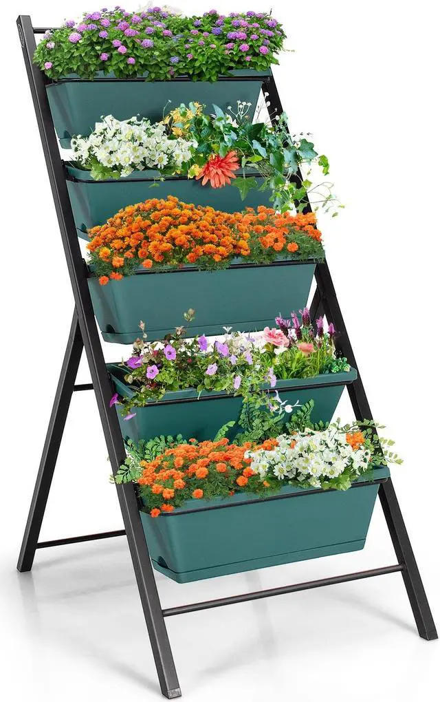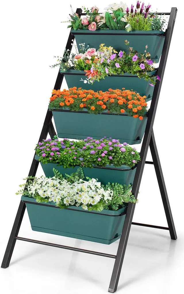 Versatile Garden Planter: This garden bed with 5 container boxes allows you to plant different plants, such as vegetables, fruits, flowers, herbs, etc. With a vertical design, it won't occupy too much floor space. Thus, you can place it in your garden, yard, patio, or balcony and fully enjoy the joy of gardening.