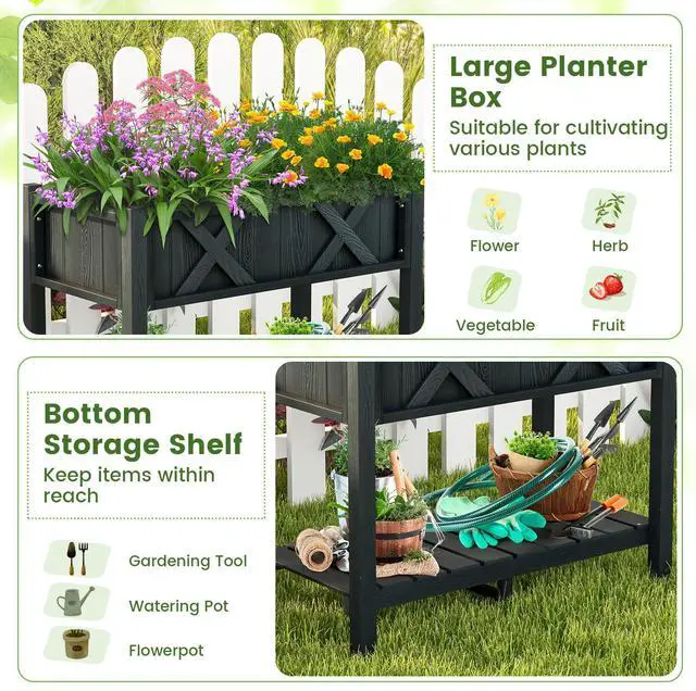 Spacious Planting Area: The raised garden bed comes with a large planter box measured 31.5" x 15" x 7" (L x W x H) interior, providing ample space for planting a variety of plants, such as flowers, herbs, vegetables, fruits, and more. Other than that, there exists a bottom storage shelf, which is perfect for keeping tools and accessories within reach.