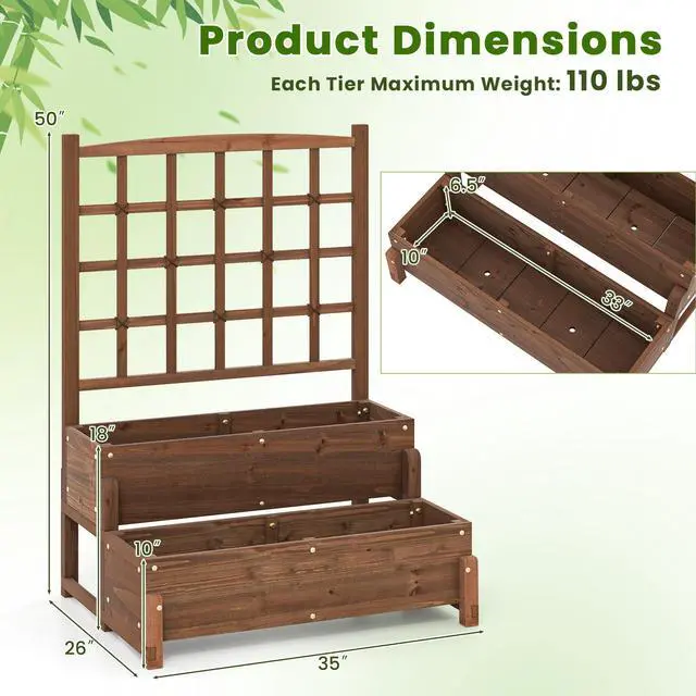 Reinforced & Stable Design: Each planter box features reinforced corner posts and interior supports for enhanced stability, holding up to 110 lbs. An additional crossbar adds structural strength for reliable, long-term use.