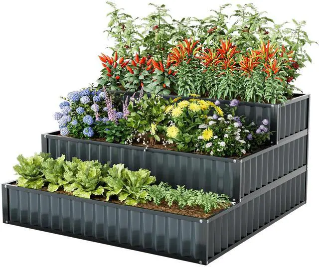 3-Tier Stair-Step Design: Each tier of the garden bed measures 8", 16", 24" in height, allowing you to maximize vertical space and accommodate plants with varying root lengths. Grow a diverse range of vegetation, including flowers, herbs, vegetables, and fruits, effortlessly.