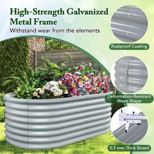 Reliable Material and Safe Design: This 2 FT raised garden bed is crafted from sprayed metal plates (gray) or galvanized metal plates (silver), offering excellent rust resistance for long-term outdoor use. Additionally, the rounded edge design enhances safety by preventing accidental injuries.