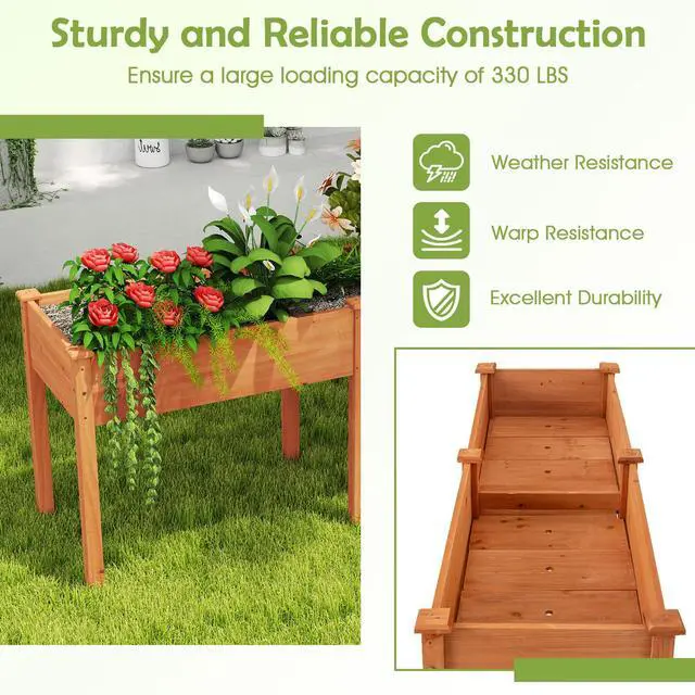 Natural Fir Wood Construction: With high-quality and natural fir wood, the raised garden bed is designed to be solid, stable, and long-lasting. Besides, the reinforced corners bring enhancement, and the slotted design simplifies assembly.