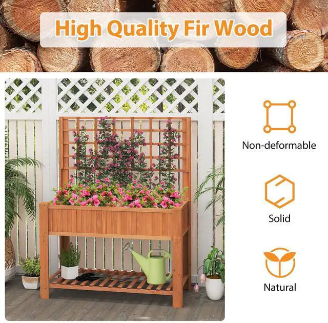 SlickBlue Raised Garden Bed with Trellis Wooden Elevated Planter Box with Legs